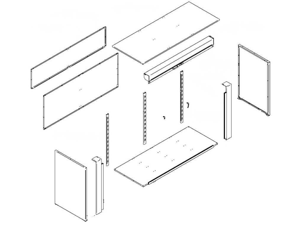 Komplet szyn montażowych do zawieszenia półek, dedykowane do modelu Magic Boxa jednomodułowego i do Magic Boxa dwumodułowego (skrzynia dolna). Szyny dają możliwość wpięcia półki co 10 cm.